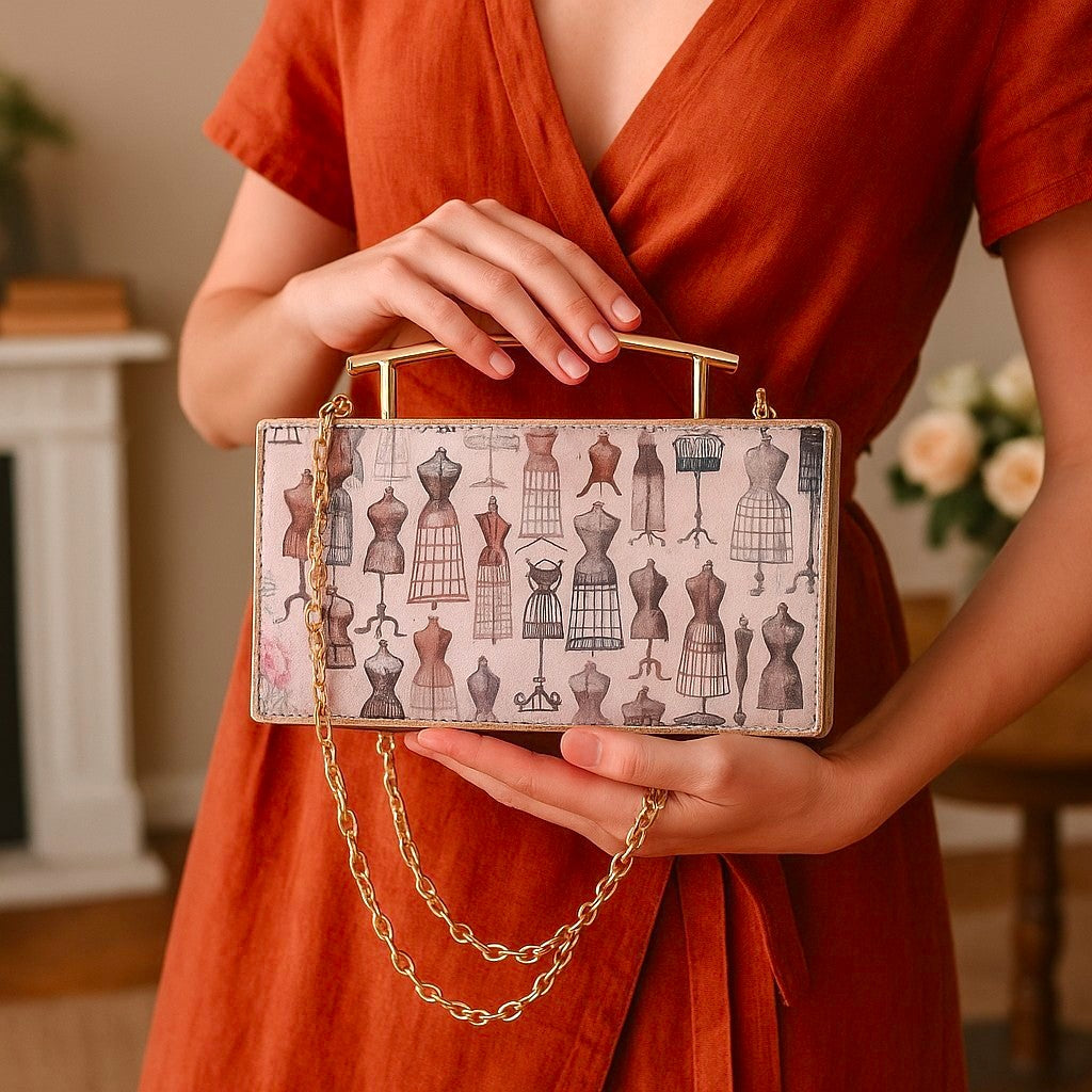 Perfect for designers, seamstresses, and style aficionados, this purse tells a story of artistry and tailoring with every glance. Neutral tones ensure it pairs beautifully with modern and vintage-inspired outfits alike.